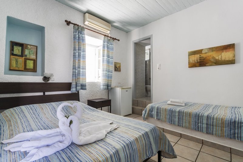 Διαθέτει δωμάτια δίκλινα, τρίκλινα και δύο αυτοτελή στούντιο. Όλα είναι πλήρως εξοπλισμένα με κλιματισμό, ψυγείο, τηλεόραση με επίπεδη οθόνη (Plasma), Wi-Fi και υπηρεσία δωματίου.